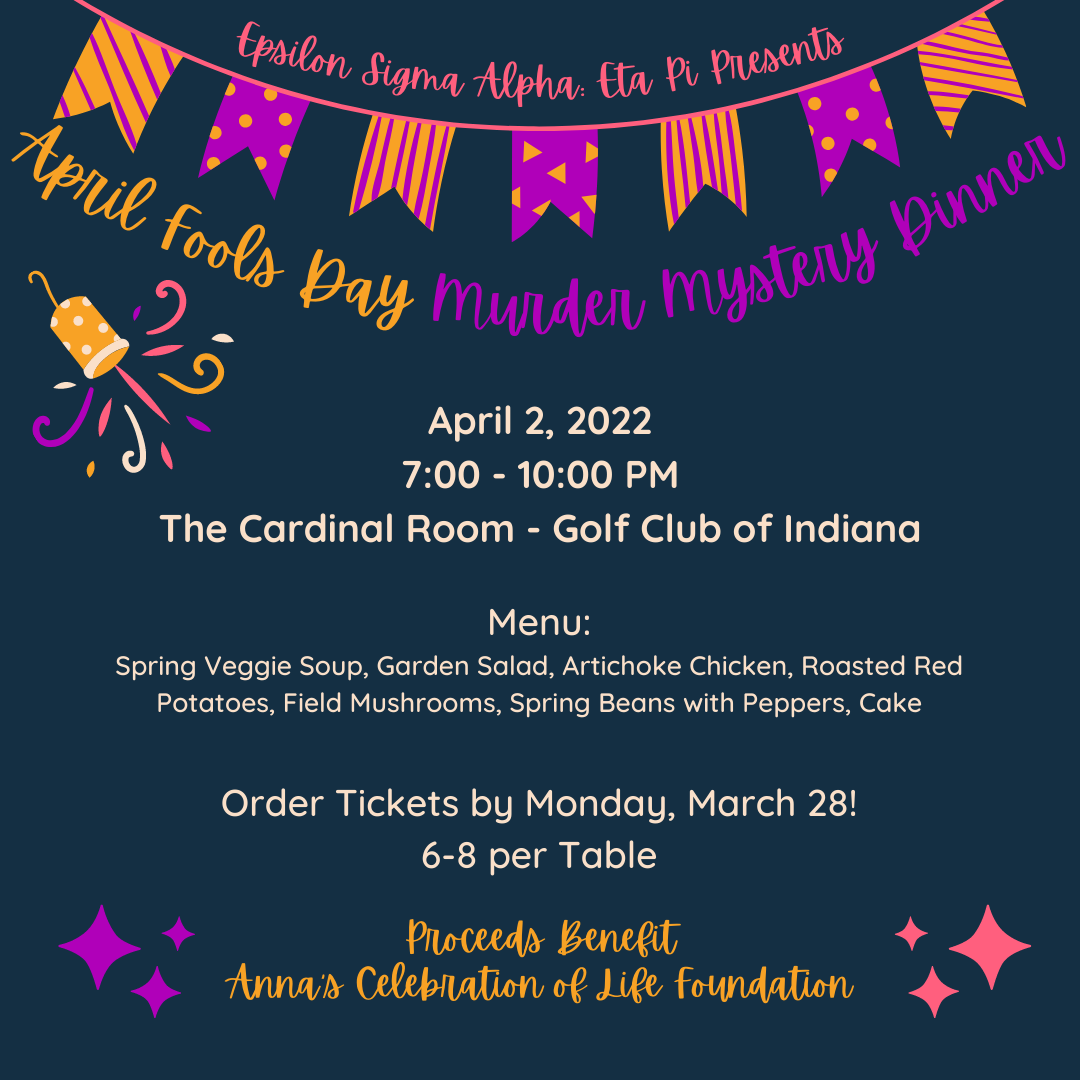 April Fools Day Murder Mystery Dinner Posted on March 25, 2022March 25, 2022 by Indiana ESA ← Previous Next →